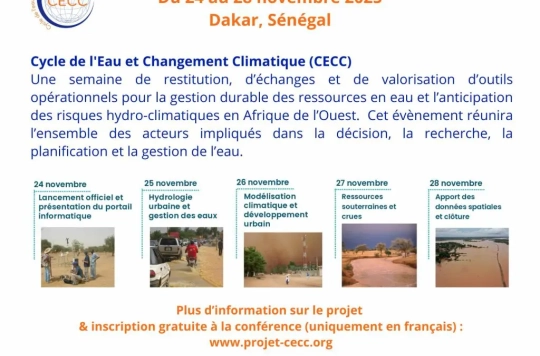 💧 Inscriptions à la conférence finale du projet CECC – Cycle de l’Eau et Changement Climatique